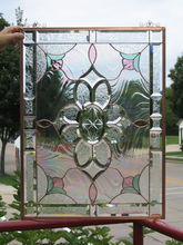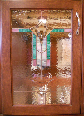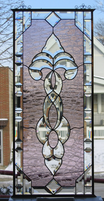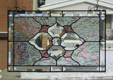 Description: Custom panel with beveled center cluster, Mauve crackle glass background.